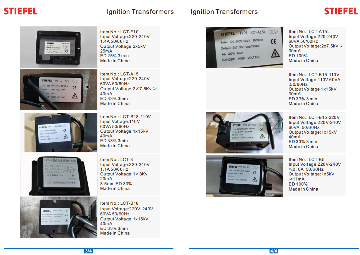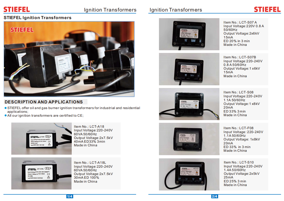 Copper Coil Ignition transformer is suitable to be applied to all kind of oil and gas burners, wall hang boilers, hot water high pressure cleaners and anti-mosquito equipment, available in intermittent and continuous version.